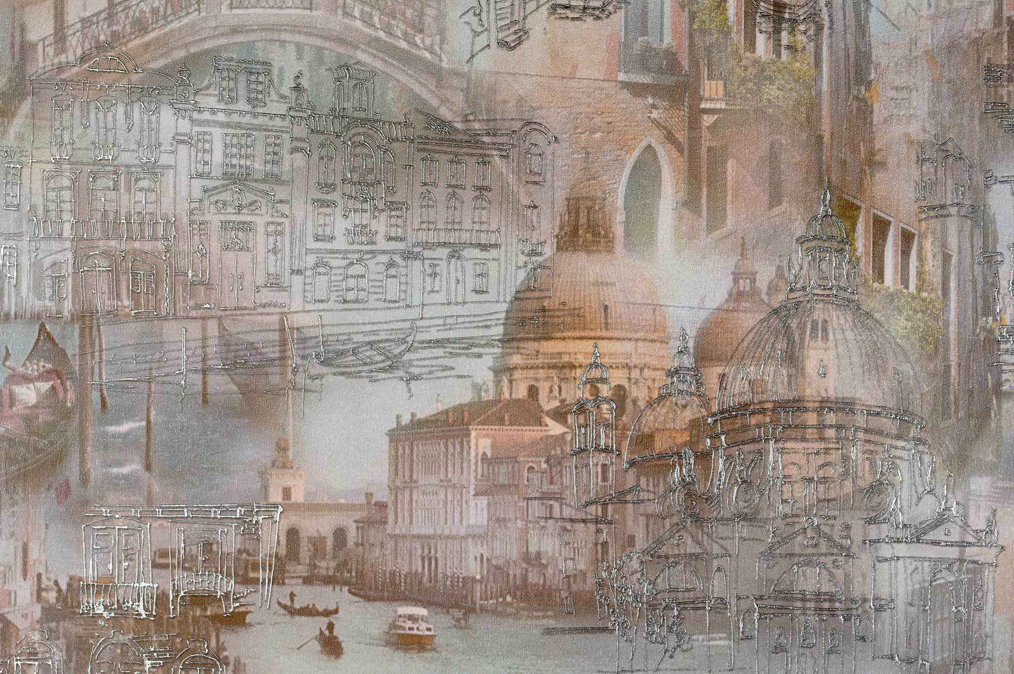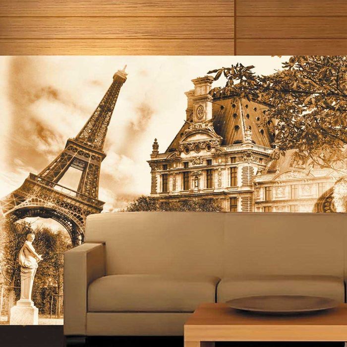 Такой вариант станет украшением для гостиной или прихожей. - Третий тип обоев с изображением города — зарисовки художника. Как будто бы творец вместо мольберта выбрал стену вашего дома и набросал сюжет из жизни города. Как правило, на таких картинах изображают суету большого города, где все куда-то спешат, уличное кафе во французском стиле, старинную городскую площадь, украшенную клумбами с розами или панораму в теплой гамме. Этот вариант придется по душе любителям загородного стиля, а оформить такими фотообоями можно любую зону дома.