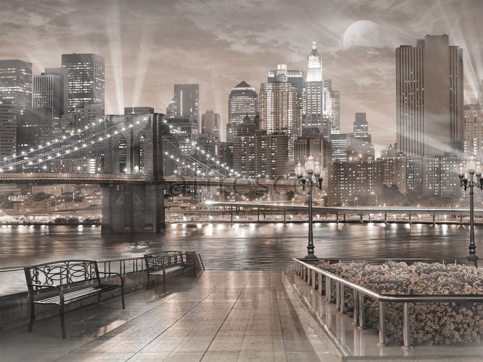 Дизайн будет динамичнее. А если вам нужно визуально увеличить комнату, то вариант для вас – обои с водной гладью. Если обклеить стену полотном, где изображено озеро Мичиган (Чикаго), то пространство станет больше. Для современного стиля можно подобрать материал, где присутствуют пейзажи Манхеттена. Лучше, если выбрать ночной город, он выглядит еще красивее. Ведь именно в Манхеттене появился на свет стиль Лофт. Комната в этом стиле будет смотреться шикарно, богато, олицетворяя роскошную жизнь.