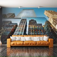 Фото городских огней используются наиболее часто и, как правило, ими оформляют спальни и гостиные, иногда кухни. Такая картина универсальна, ведь она будет удачно гармонировать со стилем хай-тек, идеальна для минимализма и подходит стилю модерн. Кроме того, обои для стен с изображением ночного города способны зрительно увеличить маленькое пространство и визуально приподнять потолки. Как правило, классический вариант помещают сзади дивана или у изголовья кровати, иногда напротив зоны отдыха на всю стену. Интересно будет смотреться панорама ночного города, если ее поместить под специальное стекло с подсветкой — это придаст картине реалистичность. - Второй вариант изображения — фотография домов, снятая снизу. Такой необычный ракурс создает иллюзию присутствия: как будто вы на самом деле стоите посреди города и рассматриваете дома. Достаточно правдоподобно будет смотреться такая картина, насыщенная цветами. Черно-белый вариант не создаст эффекта присутствия. Что выбрать для изображения: американские стеклянные небоскребы или небольшие уютные испанские дворики с цветами на окнах, решать вам.