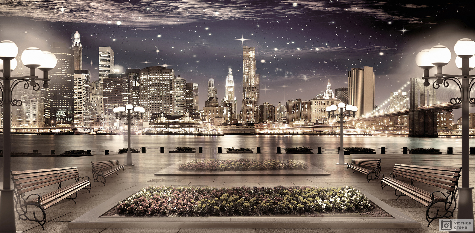 - Огни ночного города в интерьере — это классика.