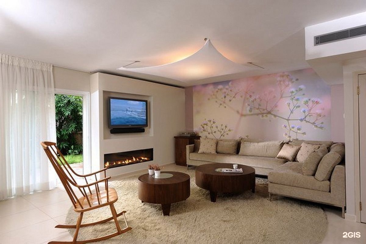 - Использование 3D технологии — напольное покрытие, натяжной потолок, обои.