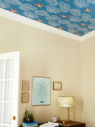 Прежде чем выбрать обои для потолка, убедитесь, что поверхность достаточно ровная и на нее хорошо ляжет выбранный вами материал. Если все в порядке, смело отправляйтесь за покупкой. Во-первых, обои, которые можно красить и расписывать, вполне доступны по цене, а во-вторых, они скрывают наличие небольших потолочных дефектов, вмятин и выпуклостей.