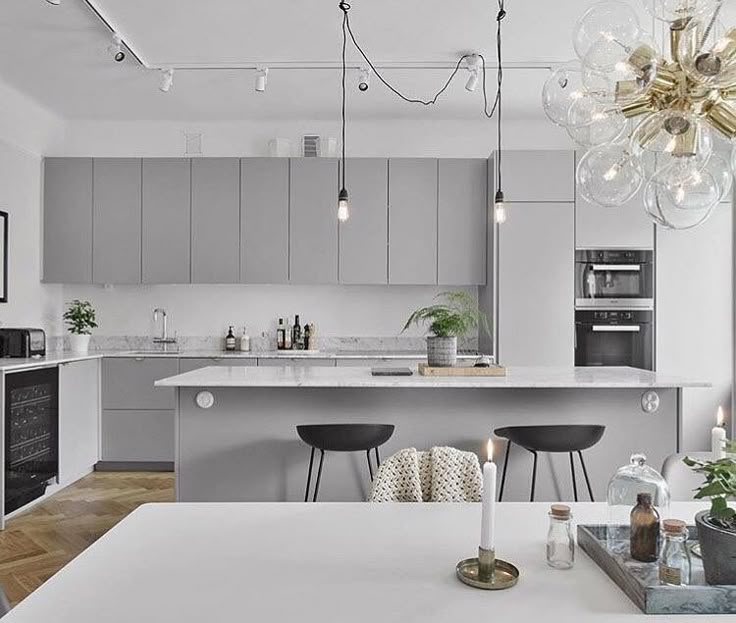 Если же, наоборот, в кухне всегда яркое солнце, то с помощью серого можно наладить баланс, чуть приглушив естественное освещение.