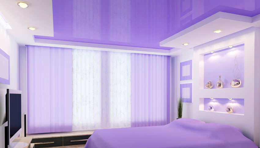 Сиреневый потолок 59 фото в интерьере, натяжные и подвесные конструкции, сочетания цвета