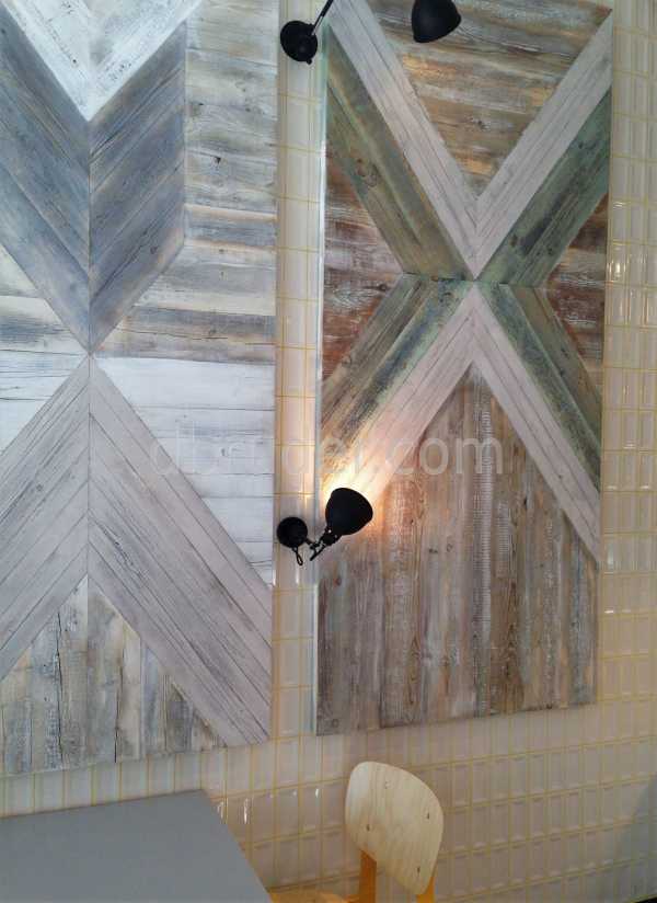 Также интересно будут смотреться стены, оформленные под доски, выкрашенные в необычные для древесины цвета: бирюзовый, голубой, оранжевый.