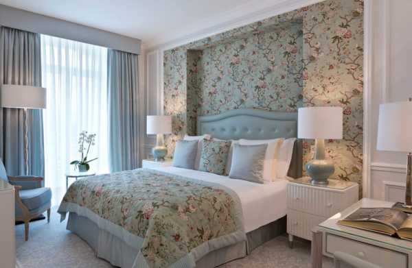 - небольших размеров цветочные композиции на еле заметном светлом фоне способны украсить пространство спальни и сформировать расслабляющую обстановку;