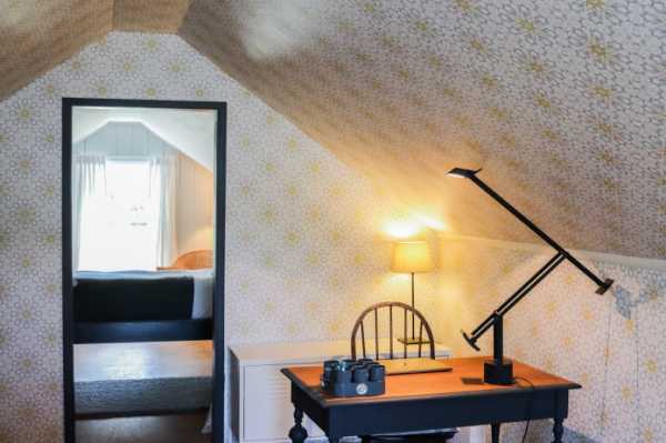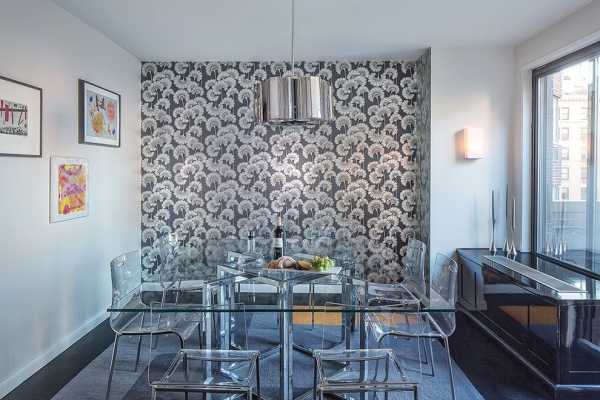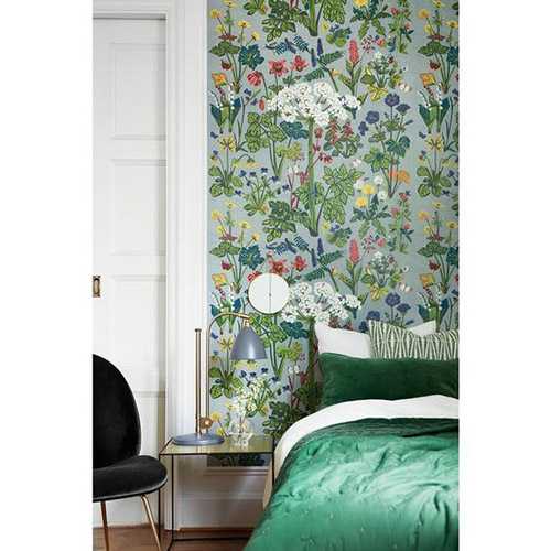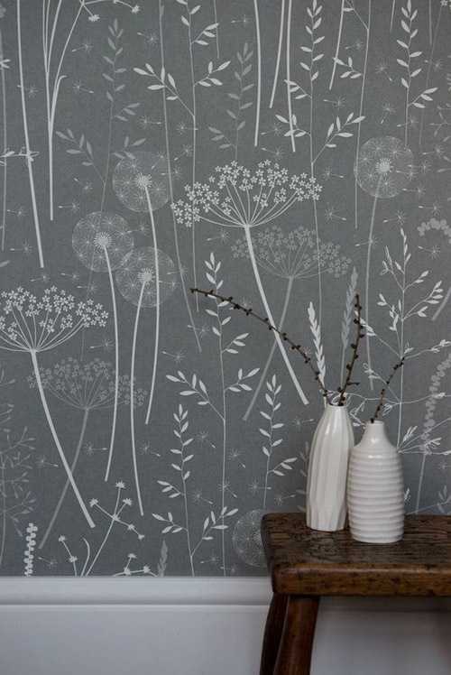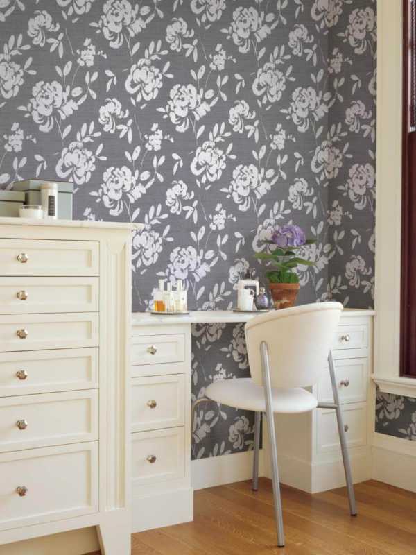 Эти фиолетовые цветы придают комнате загадку. Чтобы не затемнить пространство, на обоях не должен присутствовать крупный принт.