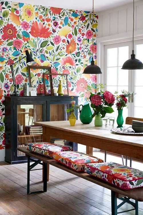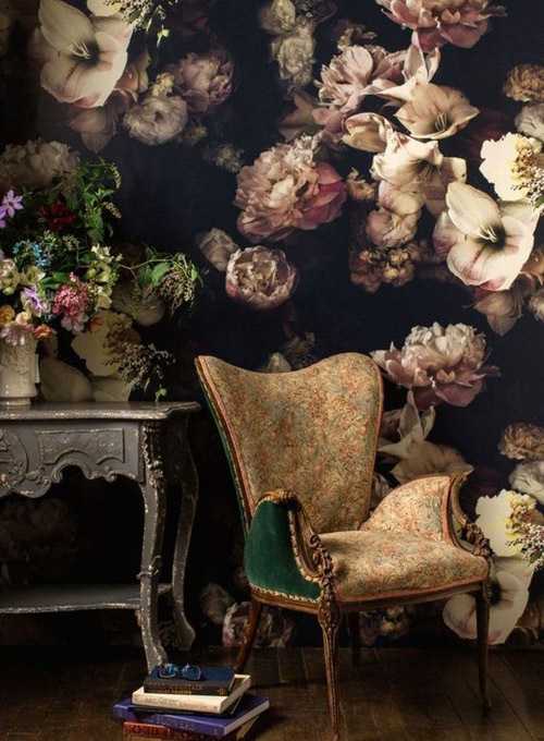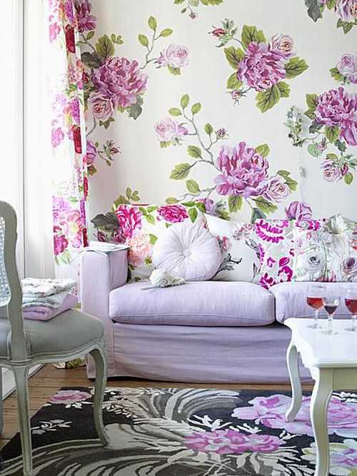 Обои с цветами в интерьере. Обои с цветочным принтом, фото интерьеров