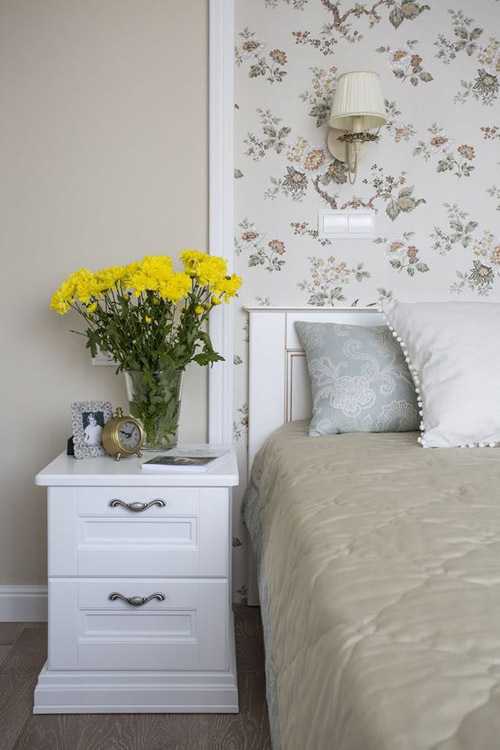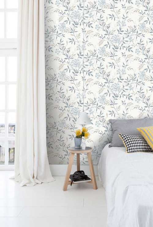 Светлые обои с некрупными цветочными композициями, едва заметными на общем фоне, оживят стены и создадут комфортную, расслабляющую обстановку.