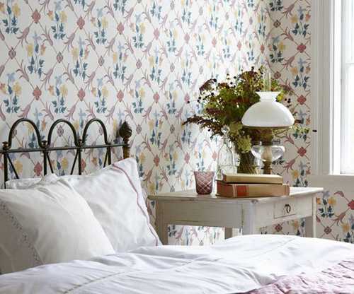 Включает в себя не яркие цвета и мелкий рисунок. Ими могут быть садовые цветы в пастельных тонах. Цветочные обои обязательно дополняются другими элементами декора, например обивкой мебели, вазами, диванными подушками или домашними цветами в горшках.