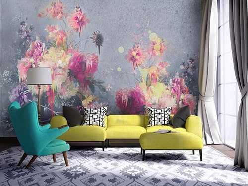 Эффект акварель завораживает и привлекает взгляды. Оформив одну из стен этими яркими нарисованными цветами, такая композиция определенно не останется незамеченной.