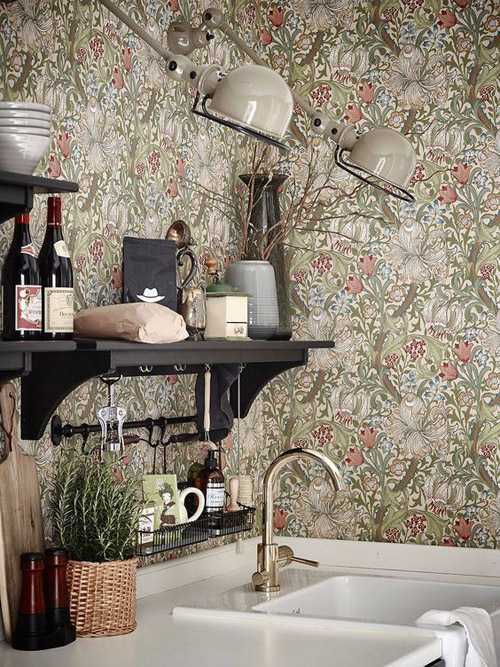 Несмотря на спорное отношение к обоям на кухне, сказать, что люди перешли на сторону менее прихотливых в быту материалов нельзя. Поклонники обоев были, есть и остаются. Цветочные узоры в ходу по всему миру от чинной Англии до прогрессивной Америки.