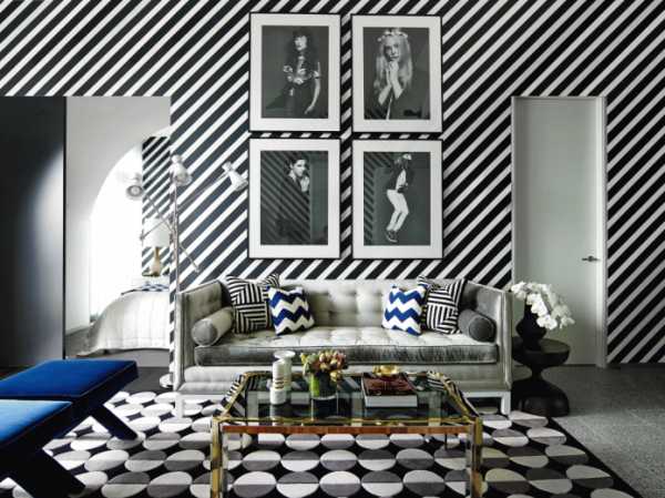 Полосы гармонично сочетаются с флористическими мотивами. Вертикальные хороши в помещениях с невысокими потолками и «вытягивают» помещение вверх. Горизонтальные «удлиняют» стены и рекомендованы для квадратных комнат.