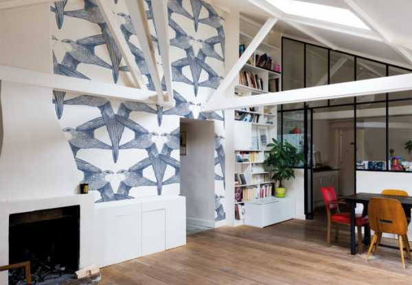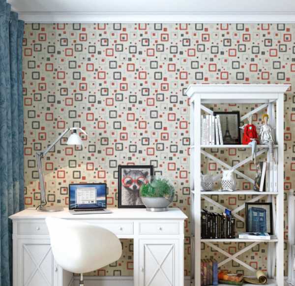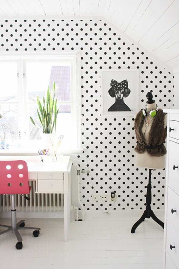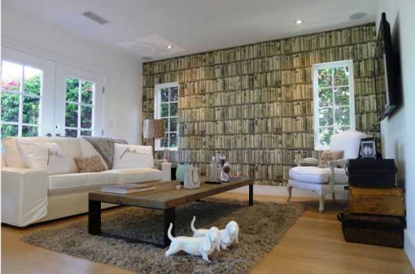 Мелкий и часто повторяющийся принт не боится антуража из мебели и предметов быта, в этом случае пространство дополняют полками, лампами, фотографиями, картинами, сувенирами.
