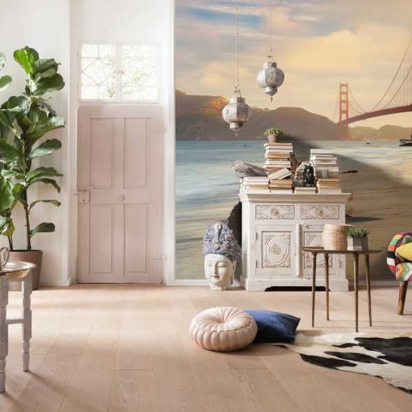 Многим известна дизайнерская концепция акцентной стены: одну стену делают яркой, эффектной, а три другие оставляют однотонными либо оклеивают полотнами-компаньонами сдержанной расцветки. Универсальными считаются белый, бежевый и кремовые цвета-компаньоны.