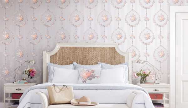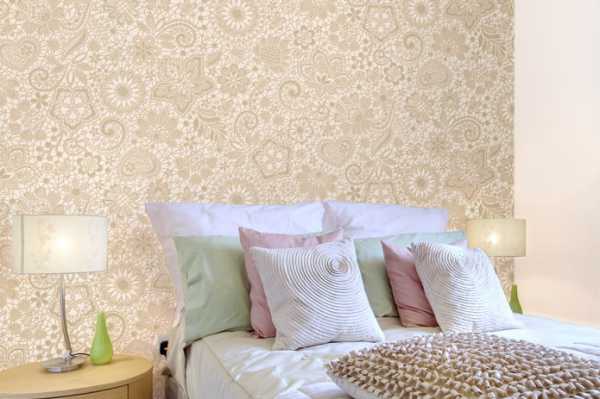 Цветы на обоях в зоне сна и отдыха – совсем другая история. Они призваны успокаивать, погружать в лёгкую медитацию, завораживать плетением, переходами, плавностью форм.