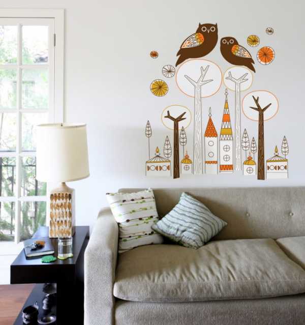 Если рисунок выбран крупный, реалистичный, стену оставляют максимально свободной от мебели, чтобы композиция смотрелась выразительно.