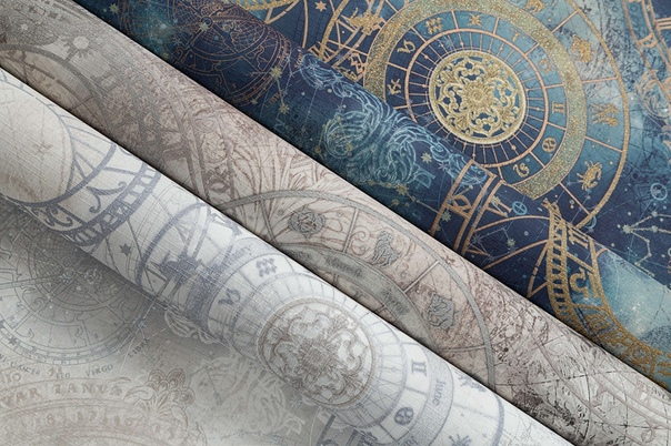 Наблюдается морская тема и в таких обоях, где изображают приборы для морской навигации либо чертежи дорогих парусников. В таких полотнах доминирующими цветами являются синий и голубой, но можно встретить и преобладание красного, песочного и серого тонов. В качестве материала используется бумага, винил, имеющий в качестве основы флизелин, а также бумага с грунтовкой, краской и мелом.