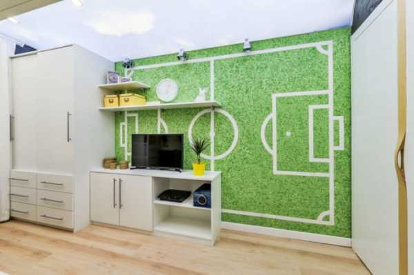 - Чтобы не перегружать обстановку в маленькой комнате, можно сделать акцент только на одной из стен.