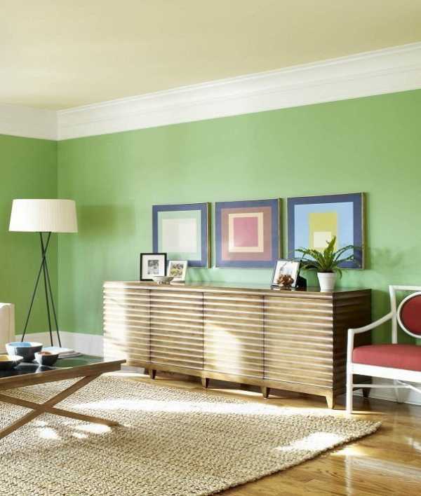 Добавит нотку уюта и тепла в интерьер. Если использовать их в хорошо освещенной комнате, то оттенок заиграет и удвоит солнечный свет. Отражая его от стен, однотонный нежно-салатовый визуально увеличит границы помещения.