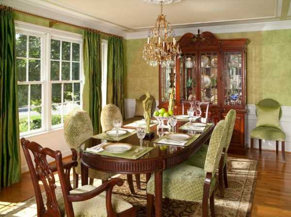 - Классика. Зеленый подойдет для всех ее вариантов, в том числе для рококо, барокко, бидермейера и стиля ампир. Наиболее подходящими будут оливковые тона, а также серо-зеленые оттенки.
