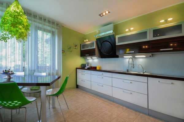 Что касается кухни, здесь огромный простор для фантазии. Мягкий зелёный цвет отлично смотрится в кухне, а уместными будут сочетания с белым, серо-голубым, бежевым, жёлтым, оранжевым. Салатовый и мятный способны пробудить аппетит. Отлично будут смотреться вкрапления розового и голубого.