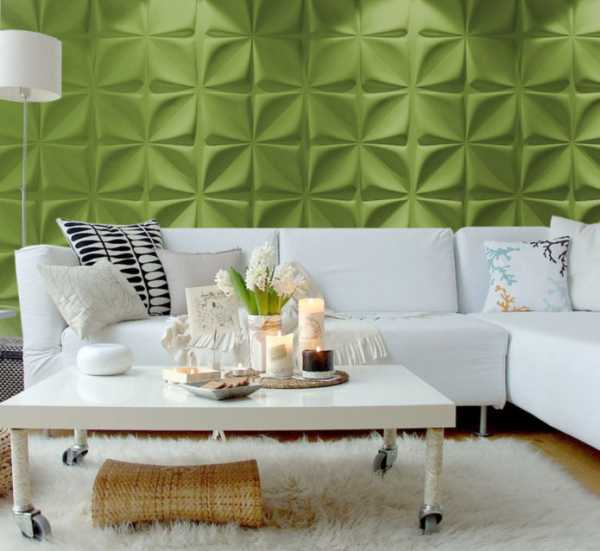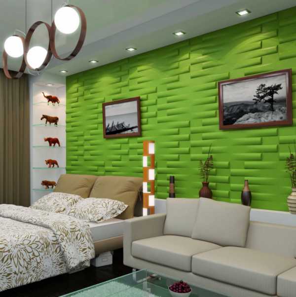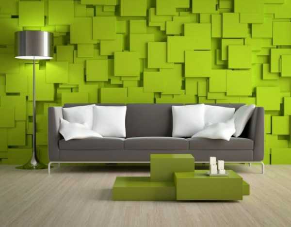 На фото интерьер с 3д обоями салатового цвета.