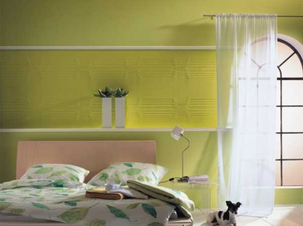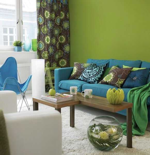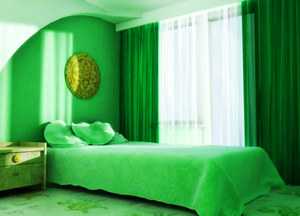 Зеленый цвет покрывает примерно пятую часть видимого спектра, с одной стороны постепенно смешиваясь с желтыми тонами и переходя в желтый, а с другой – с голубыми, переходя в синий. Значительное количество цветовых оттенков определяет различный подход к их использованию в отделке стен.