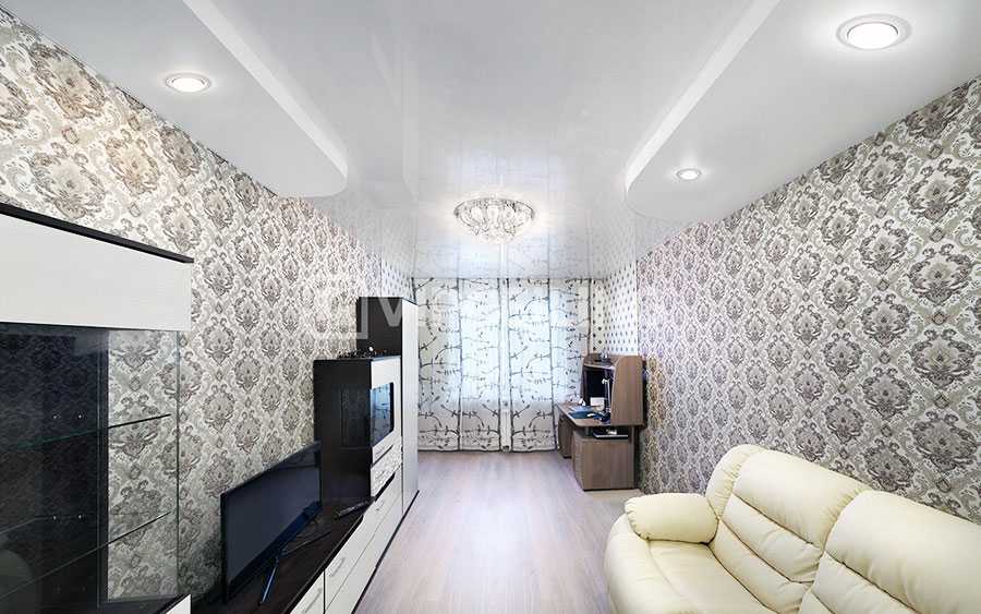 Например, с помощью глянцевого светлого натяжного потолка, можно существенно «расширить» комнату, не меняя ее реальных размеров. Подбор осветительных приборов лучше доверить профессиональным дизайнерам, в таком случаев вы станете счастливым обладателем функциональной, просторной, стильной комнаты, которая станет «визитной карточкой» вашей квартиры. Неконтрастные, легкие рисунки с вертикальными полосками, помогут добавить в комнату высоты, расширить пространство. Завершить готовый образ можно с помощью легких и воздушных портьер.