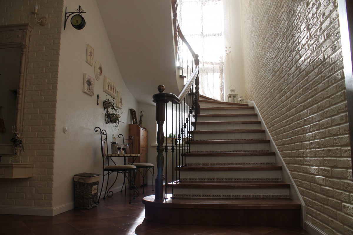 Прованс – это один из стилей, который требует гармонии дизайнерского стиля во всем доме, то есть нельзя сделать одну комнату, даже прихожую в доме с лестницей в стиле Прованс, а остальную часть дома в другом стиле.