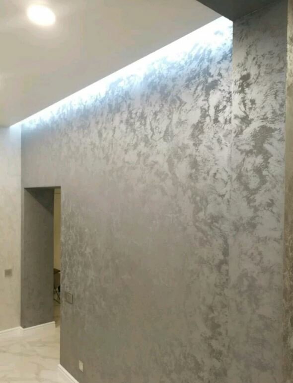 Венецианская штукатурка — это прозрачный отделочный материал, после нанесения удивительно преломляющий солнечный свет.
