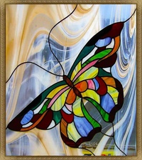 - Расписной. На поверхности стекла художник-витражист рисует изображение цветными водорастворимыми красками. Затем композицию покрывают защитным слоем и обжигают в печи при высокой температуре.