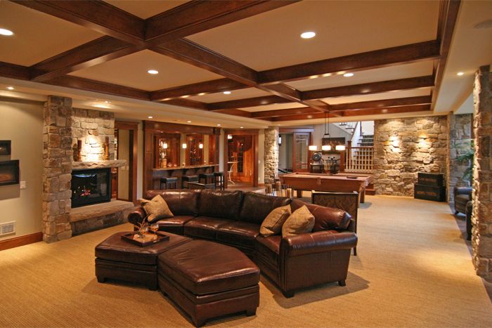Комната отдыха (творческие люди могут здесь смело устанавливать мольберт, письменный стол или музыкальные инструменты, поскольку сделав качественную звукоизоляцию, можно будет играть, сколько душе угодно). Мужчинам придется по вкусу обустройство цокольного этажа в бильярдную, или в небольшую мужскую гостиную с телевизором и столом, где можно спокойно посмотреть футбол с рыбой и пивом. Также можно там создать домашний спортзал, установив несколько матов и недорогих тренажеров. В последнем случае нужно позаботиться качественной теплоизоляции, чтобы в помещении сохранялась оптимальная температура. Стоит отметить, что многие задумываются о том, чтобы хранить в цокольном этаже овощи, например, купить небольшой ящик огурцов или помидоров в октябре, и они будут себе спокойно лежать. Однако температура в цокольном этаже редко опускается ниже +11 градусов Цельсия, что не способствует длительному хранению, и даже консервация не всякая простоит там долго. Поэтому от такой затеи лучше отказаться сразу.