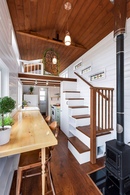 При реконструкции каждый метр свободного пространства старались использовать максимально рационально. Так, под лестницей, ведущей в мансарду, разместили небольшую библиотеку, а сам холл с колоннами, пилястрами, тяжелой люстрой выполнен в манере традиционной классики. В классическом стиле оформлена и спальня мальчика, которая ассоциируется с каютой корабля.