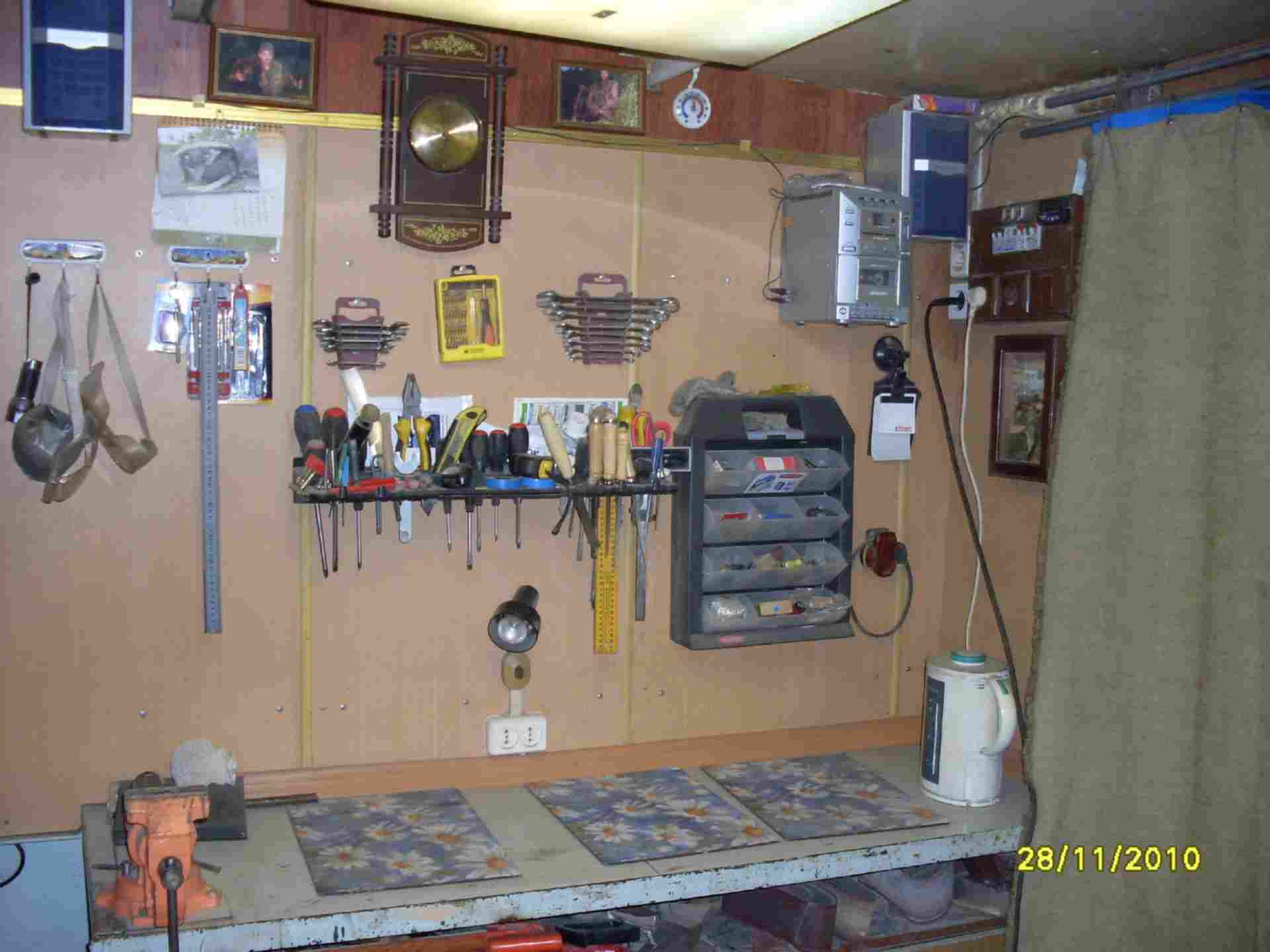 Верстак необходим, и он должен быть оборудован тисками для хранения дерева или других предметов. Вам также понадобится шкаф и место на полке для инструментов и принадлежностей. Монтаж перфорированной доски на стене дает вам большое и гибкое пространство для хранения небольших инструментов.