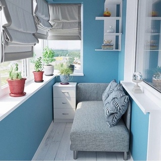 Например, вы склонны в интерьере к морской тематике, логично, что балкон будет выдержан в бело-синих тонах, с добавлением бирюзы и перламутра. Текстуру волн можно передать фактурной штукатуркой, оттенив «гребни волн» краской, а плинтус выложить искусственным камнем, имитируя берег.