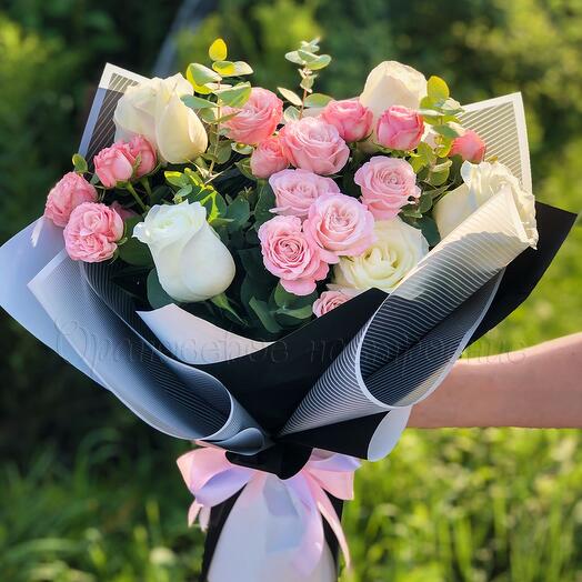 Букет 51 эквадорская роза (бело-розовая) 70 см
