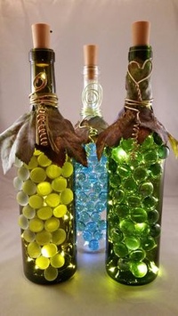 Ниже вы можете увидеть три старые бутылки из-под спиртного, которые мы переработали с помощью приморских поделок.