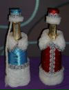 Еще одним простым способом оформления является использование гофрированной бумаги. При этом можно создать весьма забавные образы для бутылки: стильный фрак, вечерний дамский наряд, костюму вампира, Нептуна или военный мундир.