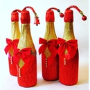 - Дополнительно бутылку можно украсить: стразами, бахромой в виде эполет, стильным шнуром или веревочкой, сургучной печатью.