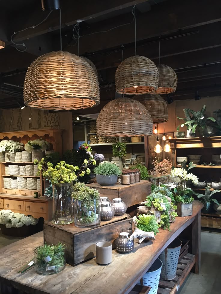 Предметы декора можно интересно комбинировать между собой на витринах. Например, ставить сухоцветы в вазу, чтобы покупателю захотелось купить не только букет, но композицию в целомГоршечные растения и товары для ухода за ними. Желательно, чтобы они тоже были стильными и аккуратными.
