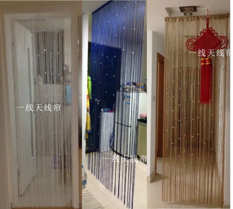 Нитевые шторы. Нитевые шторы-висюльки в дверной проем являются разновидностью кисеи, которую вешают на окна. Нитевые занавески состоят из узких полосок ткани, скрученных веревочек или лент. Их часто украшают бусинами, стеклярусом, тканевыми, металлизированными или пластиковыми аксессуарами.