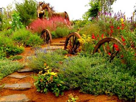 К примеру, любое транспортное средство, которое хранится в сарае из жалости, принесёт особый колорит и станет настоящим шедевром в новом своём предназначении. Возьмём старую тележку, немного её отреставрируем и высадим прямо в неё цветы. Вот и получилась эксклюзивная и привлекательная клумба. С таким подходом можно двигаться и дальше, главное, выдумка и желание.