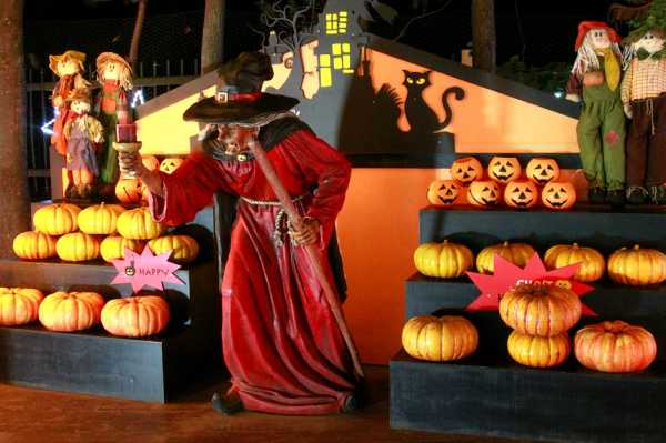 Постепенно праздник Хэллоуин укоренился и на российских просторах. Конечно, у нас празднуют его не с таким размахом, как в Америке или Европе, но хоть немного украсить страшненьким декором квартиру, дом или общественные заведения стараются уже многие. Различные привидения, пауки, ведьмы и прочие герои страшного праздника поселяются на клумбах, окнах и возле входной двери.