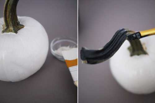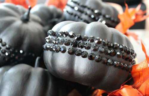 Ну, а этот мастер-класс я просто обожаю. Как говорится, специально для гламурных модниц, красим и украшаем маленькие тыковки глянцевой черной краской и сверкающими черными стразами.