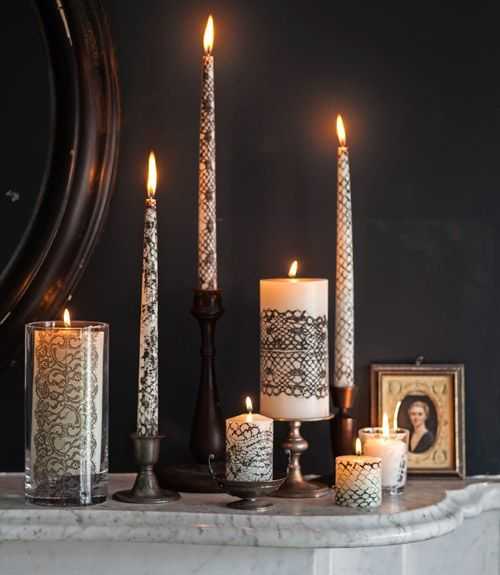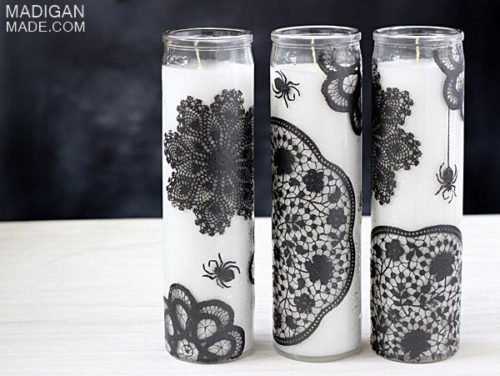 Очередной вариант с кружевом. На этот раз декорируем стеклянные подсвечники. Весь процесс показан на фото ниже.