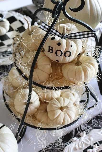 В последнее время стали использовать тыкву в разных цветах и материалах