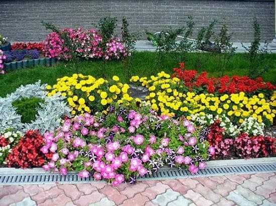 Если застройщик осуществляет возведение коттеджных поселков, то он уже наверняка не только получил допуск СРО в проектировании, но и подготовил план по обустройству территории. И часто в нем можно прочесть о том, что к посадке готовятся именно те цветы, что высаживаются на даче. Объясняется это всё очень просто – подобные растения хорошо зарекомендовали себя на протяжении десятилетий, а значит можно не сомневаться в том, что после высадки в грунт они не погибнут. Красиво оформленный цветник на даче: