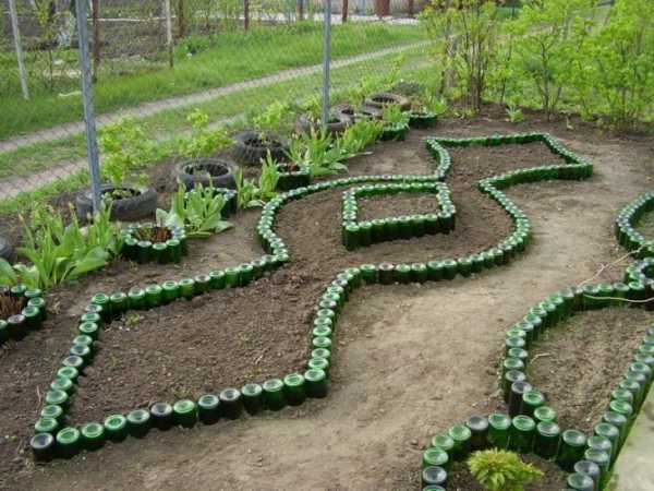 Ограждения для клумбы на даче делаются не только из покупного декоративного материала, но и из подручных средств: