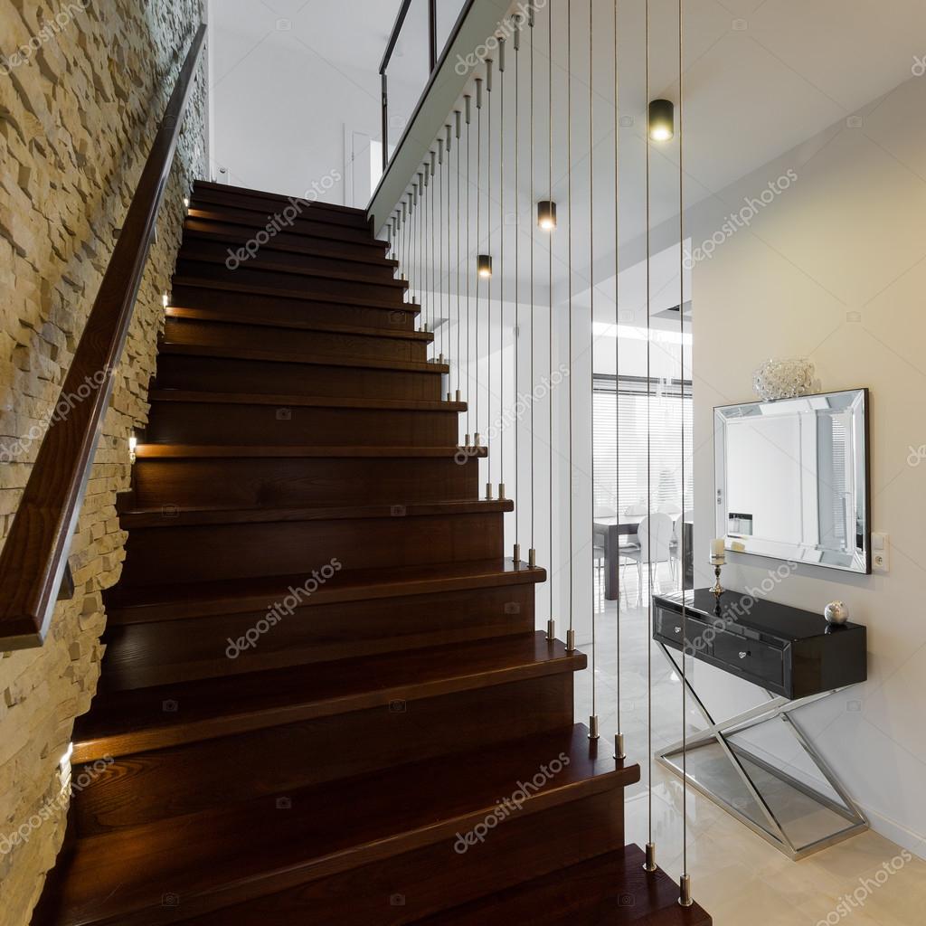 Самым популярным местом для лестницы остается прихожая, особенно в просторных особняках. Таким образом, войдя в дом, вы сразу получаете доступ ко всем комнатам, не блуждая по коридорам.